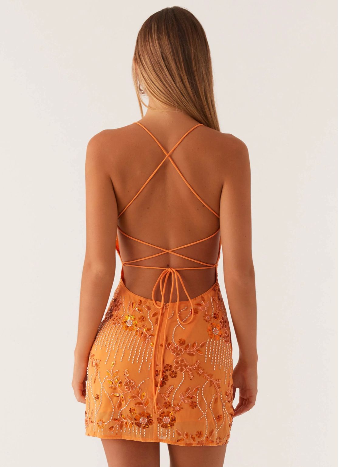 Make every date night unforgettable in this breathtaking embellished mini dress. The rich orange tone radiates warmth and confidence, while the intricate floral beadwork adds a touch of timeless elegance. Designed with a flattering silhouette that hugs in all the right places, this dress combines comfort with glamour. Its delicate straps and sparkling details shimmer beautifully under evening lights, creating a romantic glow that’s impossible to ignore. Whether it’s dinner under the stars or a special celebration, this dress is the perfect choice for moments when you want to feel both sophisticated and irresistibly stunning.